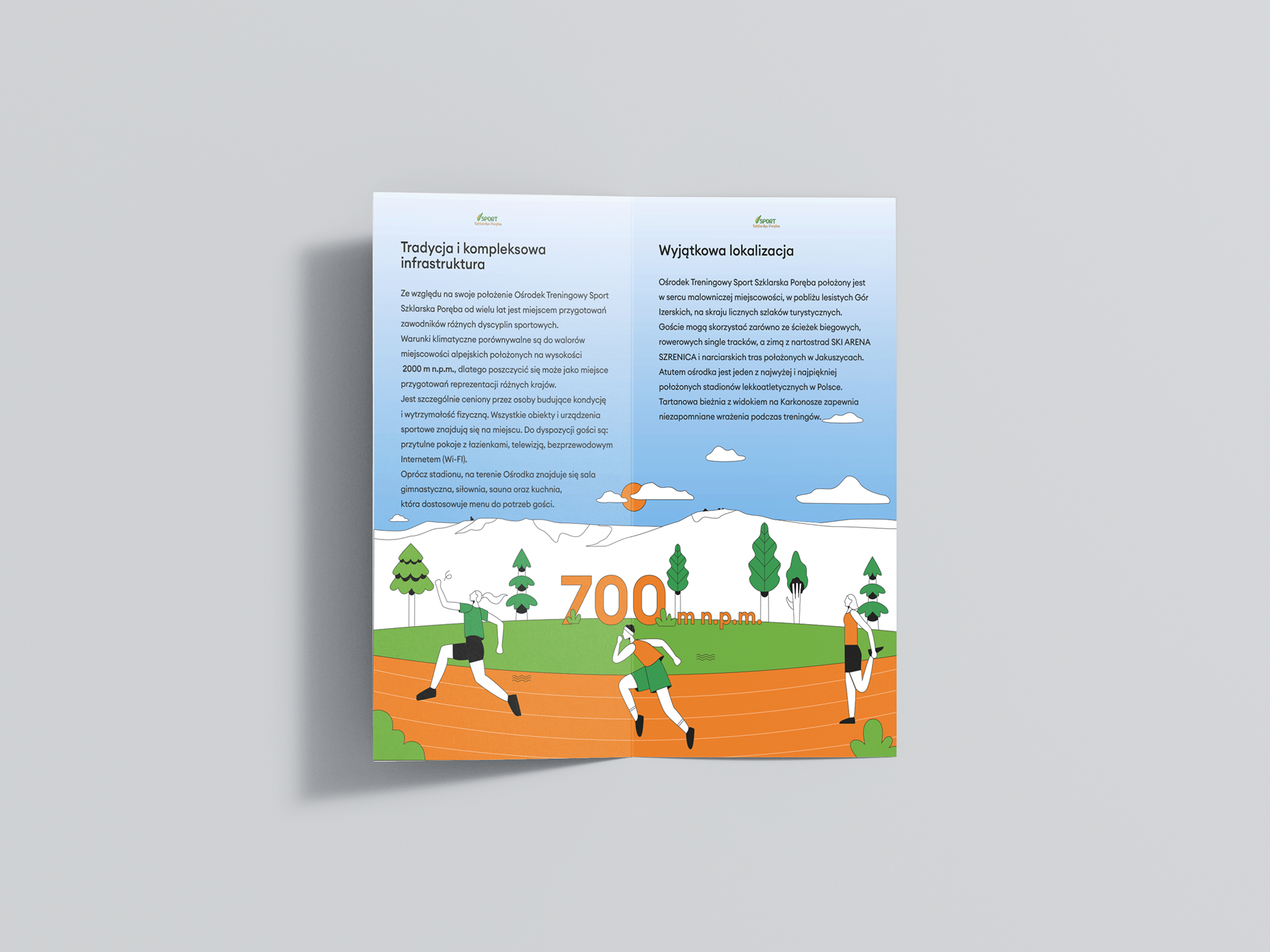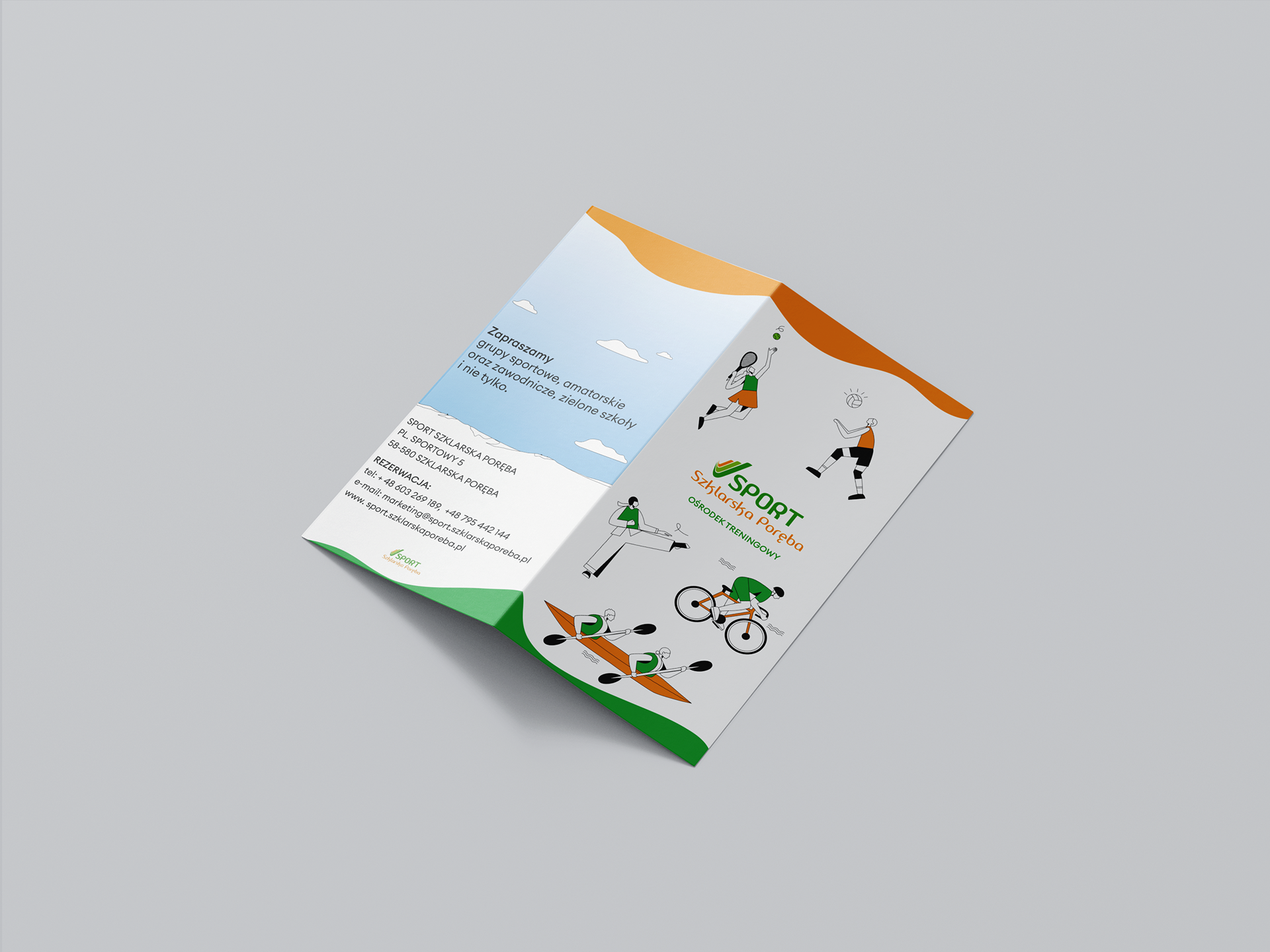 A visually appealing and informative flyer was designed for the Sport recreation center in Szklarska Poręba, highlighting the center’s activities and specific atmosphere.